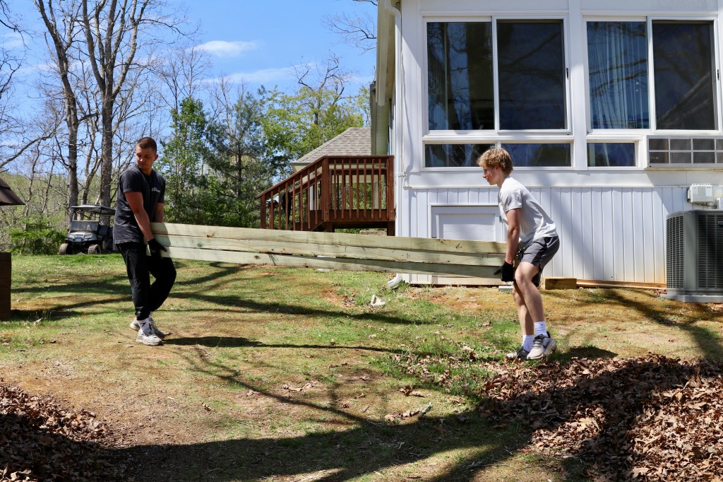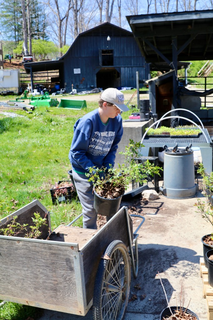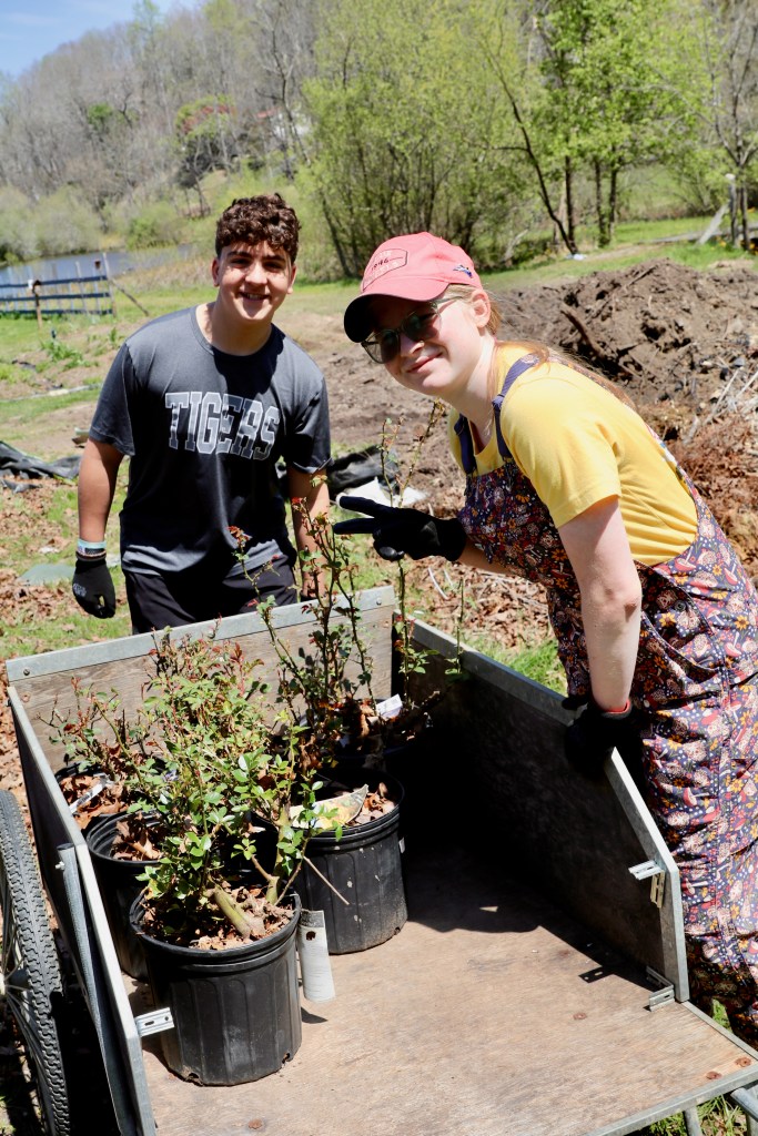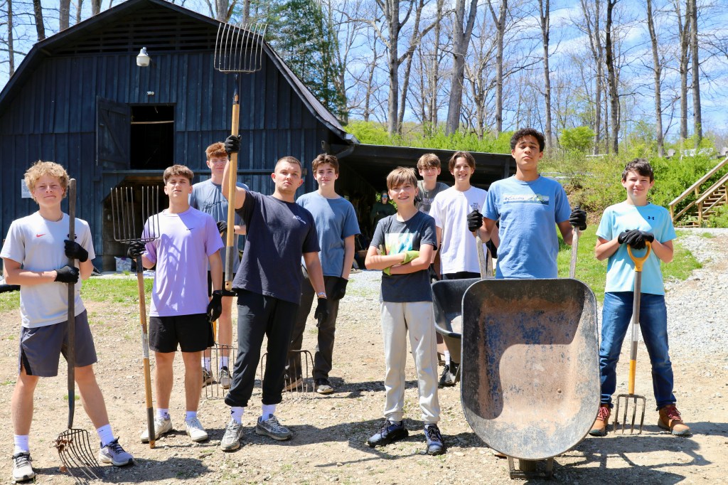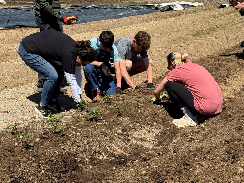 In the afternoon, both teams came together at Veterans Healing Farm, a nonprofit that serves veterans through agritherapy. Students shoveled compost, planted dahlias, mulched, and tackled a variety of projects to help prepare the farm for the upcoming season.