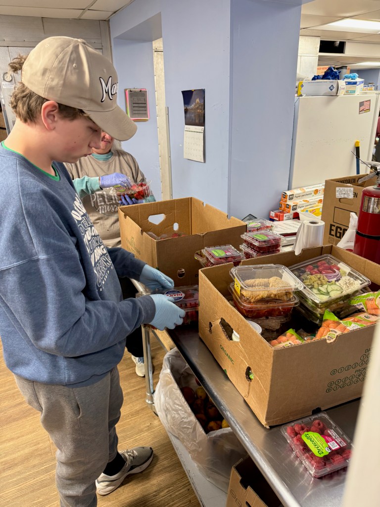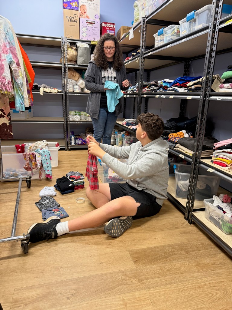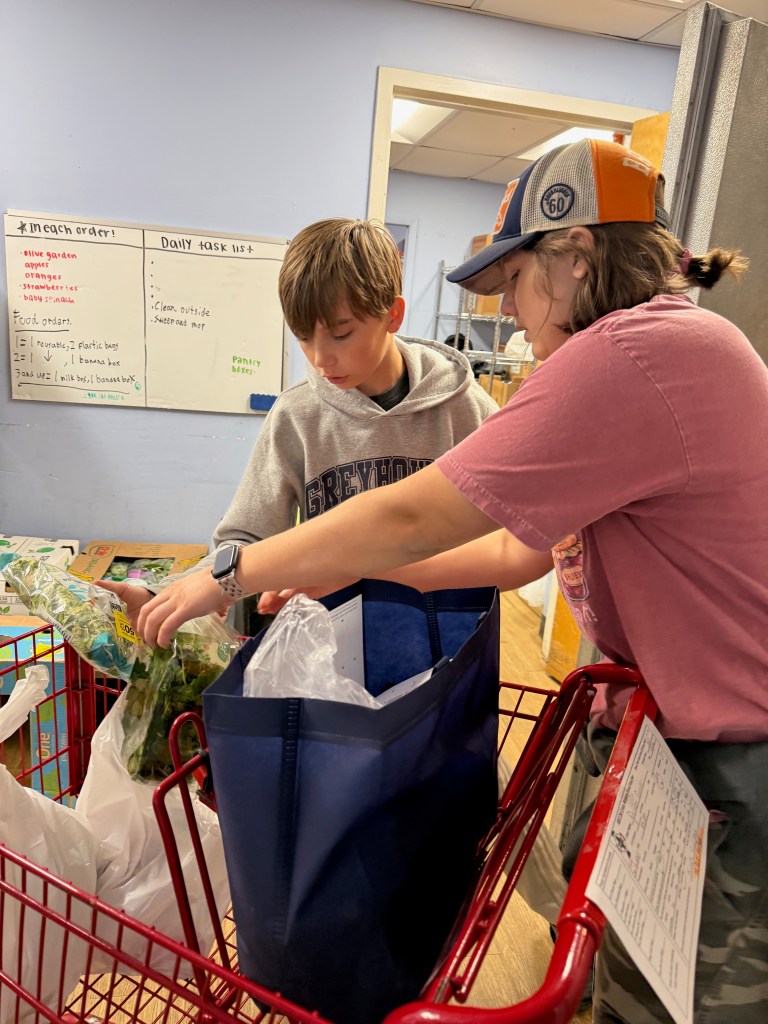 Our middle school team jumped in right away at the crisis center, helping sort more than 1,000 pounds of donated food from local partners like Walmart, Whole Foods, and Chick-fil-A. They also helped fill and pack orders as they came in, making sure families received what they needed.