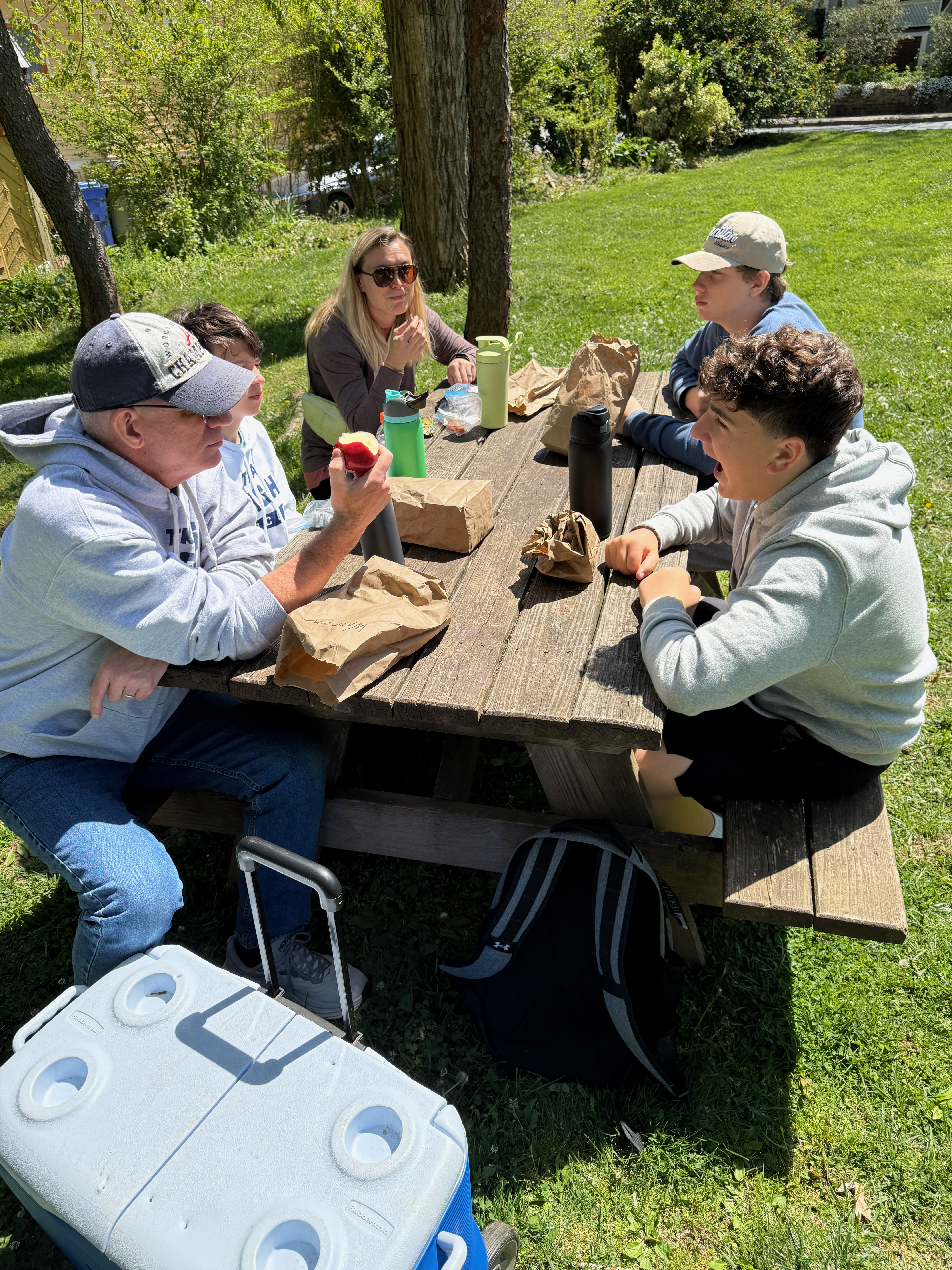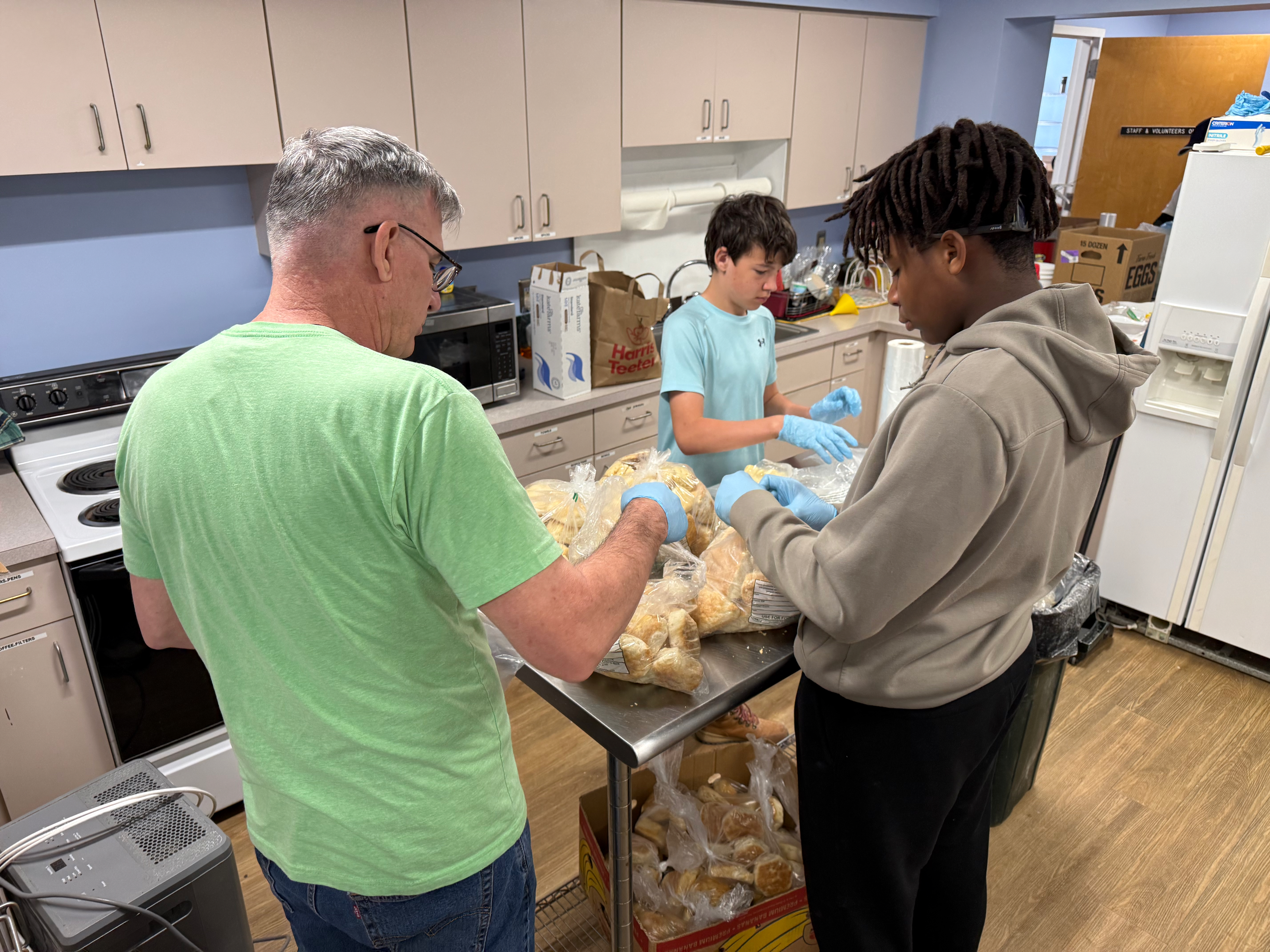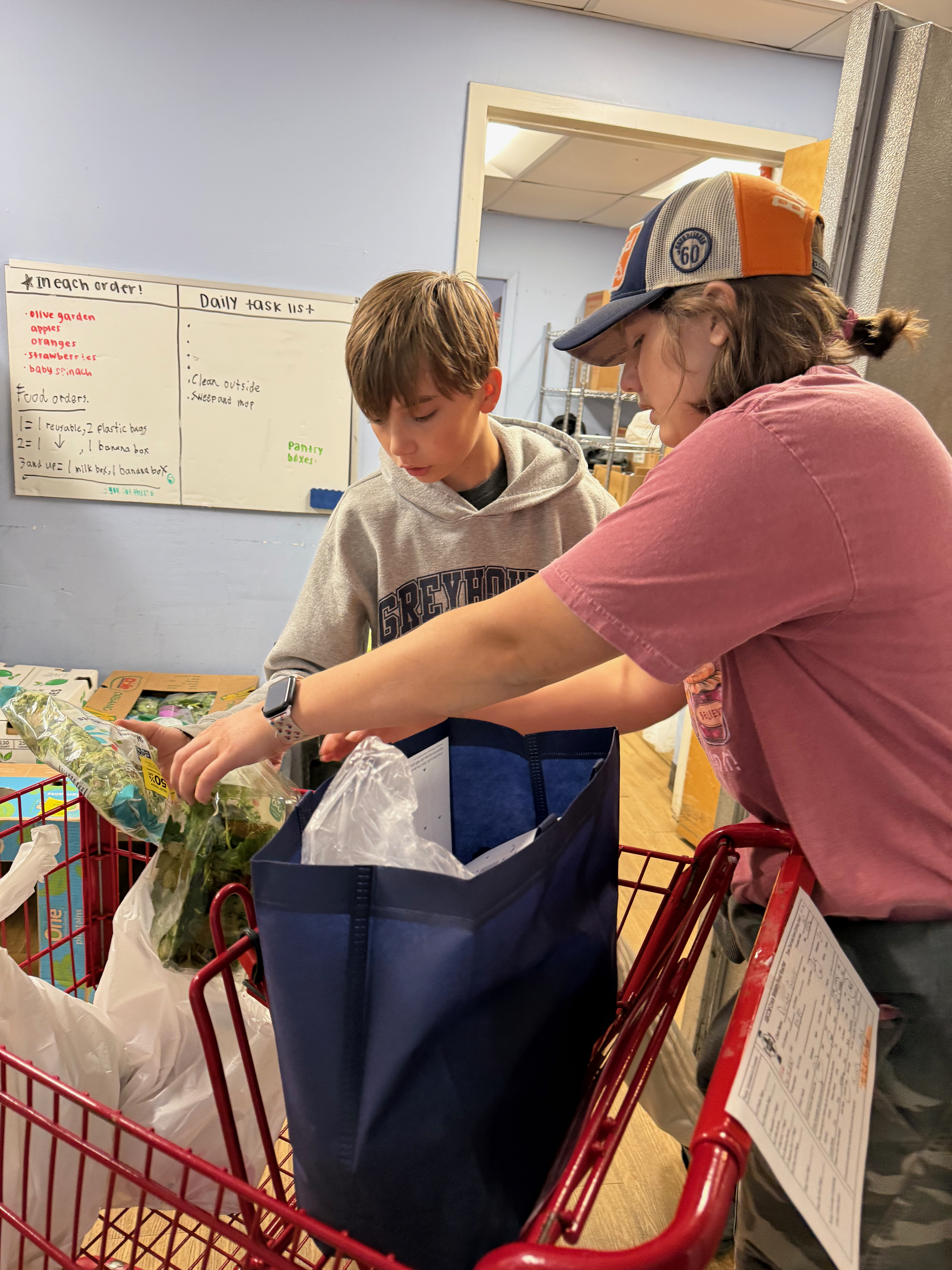 Our middle school team jumped in right away at the crisis center, helping sort more than 1,000 pounds of donated food from local partners like Walmart, Whole Foods, and Chick-fil-A. They also helped fill and pack orders as they came in, making sure families received what they needed.